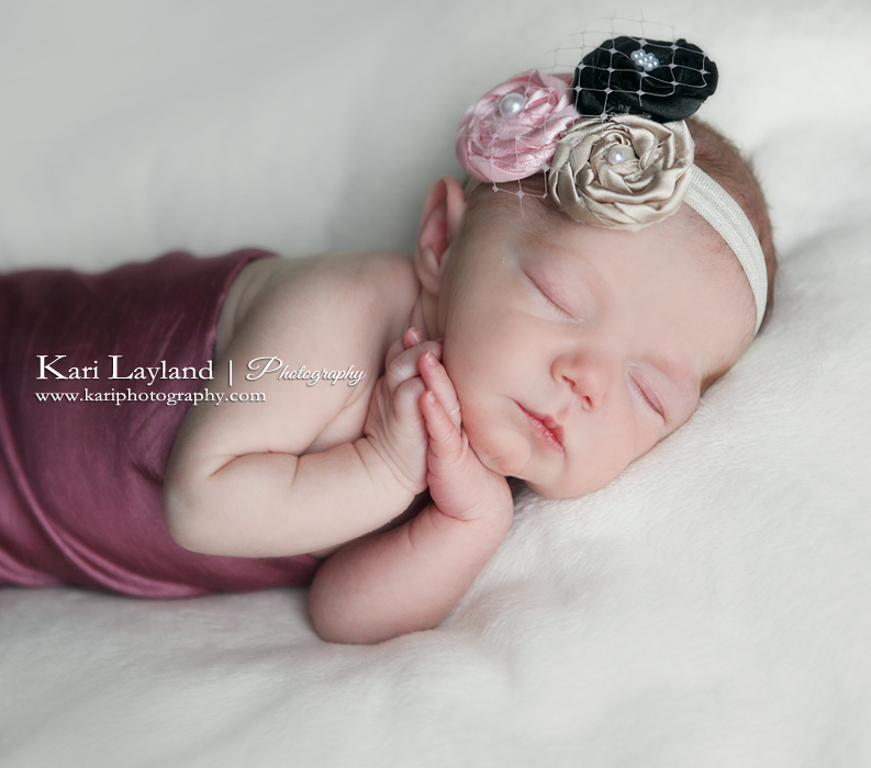 I had a wonderful time today photographing beautiful Brooklynn. Born on St Patrick’s day weighing less than 6 pounds, this little girl was such a joy to work with. She had a rough night before, keeping poor mom up all night. That meant she was super sleepy for me, and Mom got a nice little nap during our photo shoot 🙂 What do you think of the headbands she’s wearing? The soft ones with the beads/button were made by yours truly! I’m not exactly miss crafty, so that was a big accomplishment for me! The other floral headband was made by the talented Brittany from Georgia Couture. The cute hat was made by Ashley from Ashley’s Home Spun. Both of these ladies will be giving away some of their amazing creations here in a couple weeks, so stay tuned to see how you can win. Until then, enjoy the beautiful Brooklynn: